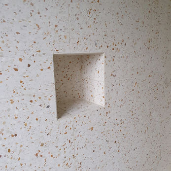 Voor deze badkamerrenovatie, in samenwerking met FACET Architecten, plaatsten we terrazzo vloer- en wandtegels van 60x60x2 cm op een houten ondergrond. Met aangepaste primer, S2 flexlijm en ontkoppelingsmat is deze badkamer optimaal voorbereid op de vochtige omgeving. De douche kreeg een geïntegreerde zeepnis en strak uitgevoerde buitenhoeken in verstek.